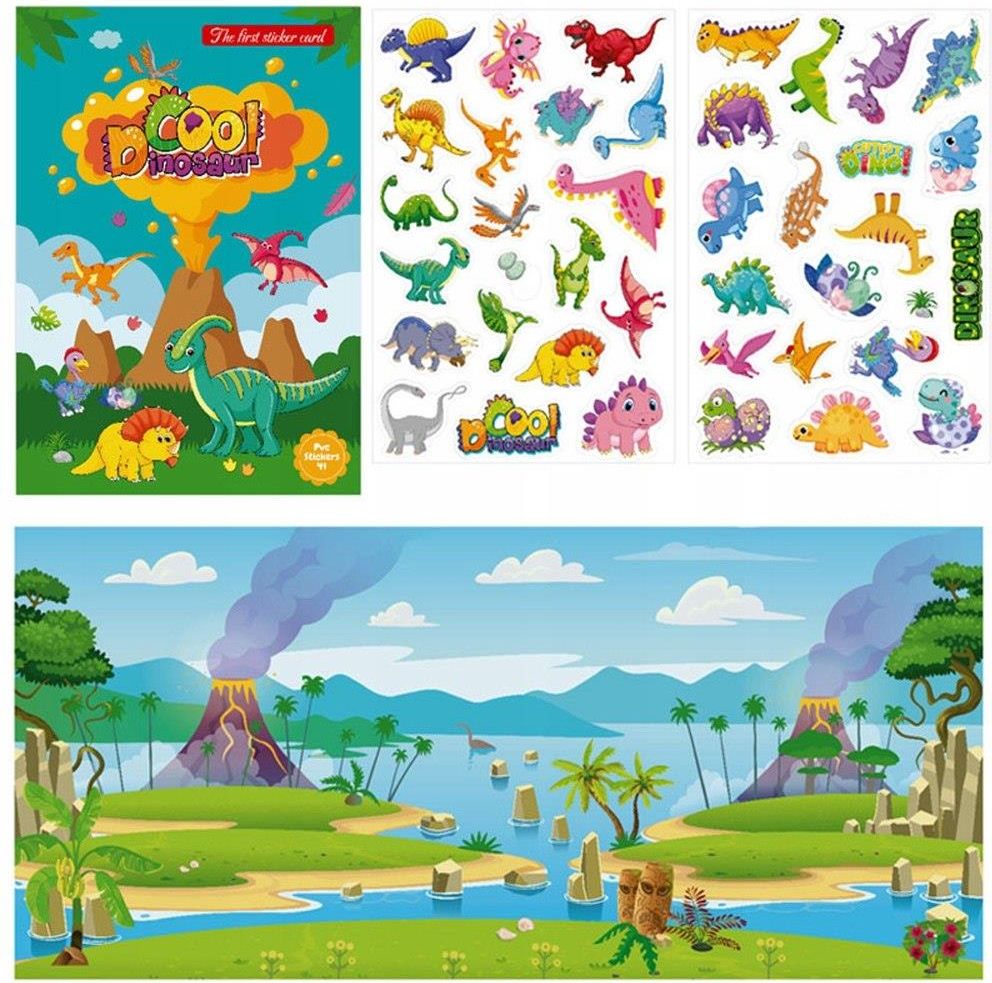 Książeczka z naklejkami Dinozaury Książeczka z naklejkami dinozaurów, do wypełnienia w środku. W zestawie znajduję się 41 naklejek z dinozaurami. Wymiary książeczki: 24 x 0,5 x 51 cm Wiek 3+