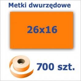 TAŚMA DO METKOWNIC 26x16mm Taśma do metkownic dwurzędowych Kolor pomarańczowy Wymiar metki 26 mm x 16 mm. Cena za 1 rolkę Metka prosta.