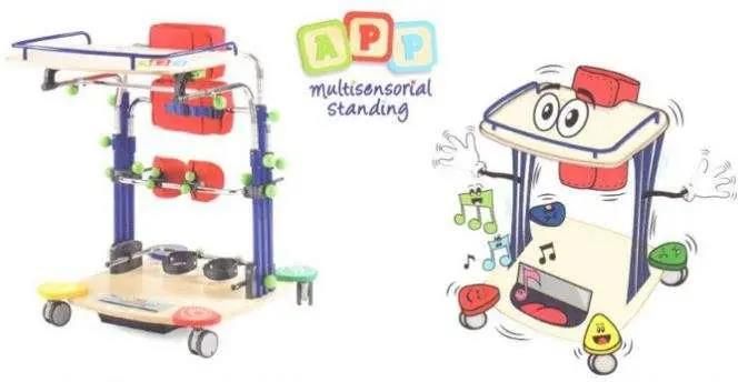 #html-body [data-pb-style=R87K22T]{justify-content:flex-start;display:flex;flex-direction:column;background-position:left top;background-size:cover;background-repeat:no-repeat;background-attachment:scroll}#html-body [data-pb-style=U1HX1ES]{border-style:none}#html-body [data-pb-style=IWOJT6J],#html-body [data-pb-style=XW7S2AN]{max-width:100%;height:auto}#html-body [data-pb-style=U8PO7VJ]{border-style:none}#html-body [data-pb-style=KK3A1T8],#html-body [data-pb-style=NF4PVKQ]{max-width:100%;height:auto}@media only screen and (max-width: 768px) { #html-body [data-pb-style=U1HX1ES],#html-body [data-pb-style=U8PO7VJ]{border-style:none} }APP Multisensorial Standing – pionizator wspierający aktywną rehabilitację dzieciAPP Multisensorial Standing marki Ormesa to innowacyjne urządzenie do terapii stojącej, przeznaczone dla dzieci z zaburzeniami neurologicznymi i motorycznymi. Zapewnia bezpieczne ustawienie w pozycji pionowej dzięki systemowi pasów i podpór, które stabilizują kostki, kolana, biodra oraz klatkę piersiową. Pionizacja ma kluczowe znaczenie w terapii wielu schorzeń, takich jak porażenie czterokończynowe, niedowład kończyn dolnych czy mózgowe porażenie dziecięce. To doskonałe rozwiązanie zarówno do użytku domowego, jak i placówek rehabilitacyjnych – zaprojektowane z myślą o poprawie jakości życia małych pacjentów.Unikalna funkcja multisensoryczna – dźwięk i wibracje wspierające terapięCo wyróżnia ten pionizator na tle innych rozwiązań? APP Multisensorial Standing został wyposażony w system odtwarzania dźwięku, który generuje przyjemne wibracje rozchodzące się po ciele dziecka. To nie tylko zabawa, ale przede wszystkim stymulacja układu nerwowego i redukcja napięcia mięśniowego. Wbudowane urządzenie audio pozwala odtwarzać ulubioną muzykę lub relaksacyjne dźwięki, które angażują dziecko i zwiększają jego zaangażowanie w terapię. Do pionizatora można łatwo podłączyć laptop, tablet lub smartfon, co pozwala urozmaicić sesje rehabilitacyjne o gry edukacyjne, filmy lub bajki.Komfort i funkcjonalność – stolik ułatwiający codzienne aktywnościAPP Multisensorial Standing to nie tylko sprzęt rehabilitacyjny, ale również wygodne stanowisko do zabawy lub nauki. Dzięki praktycznemu stolikowi dziecko może korzystać z książek, gier, a nawet spożywać posiłki w pozycji stojącej. To kompleksowe podejście do terapii, które łączy zdrowie z codziennymi przyjemnościami. Sprawdź, jak multisensoryczny pionizator Ormesa może odmienić proces rehabilitacji Twojego dziecka i przynieść mu radość z każdego dnia. PARAMETRY TECHNICZNE rozmiar 1 rozmiar 2 rozmiar 3 obwód obejmy klatki piersiowej i biodrowej 60 cm 65 cm 70 cm wysokość od podstawy do stawów kolanowych 19-31 cm 19-38 cm 19-48 cm odległość stolika od dolnej podstawy 49-73 cm 58-88 cm 67-100 cm odległość obejmy piersiowej od dolnej podstawy w tym rozmiarze brak peloty piersiowej 70-90 cm 85-110 cm odległość obejmy biodrowej od dolnej podstawy 44-56 cm 55-68 cm 65-85 cm szerokość dolnej podstawy 56 cm 60 cm 65 cm długość dolnej podstawy 60 cm 70 cm 80 cm całkowita długość 74-83 cm 78-88 cm 83-93 cm waga urządzenia 17 kg 21 kg 23 kg maksymalne dopuszczalne obciążenie 35 kg 45 kg 55 kg Załącznik Instrukcja techniczna Karta katalogowa