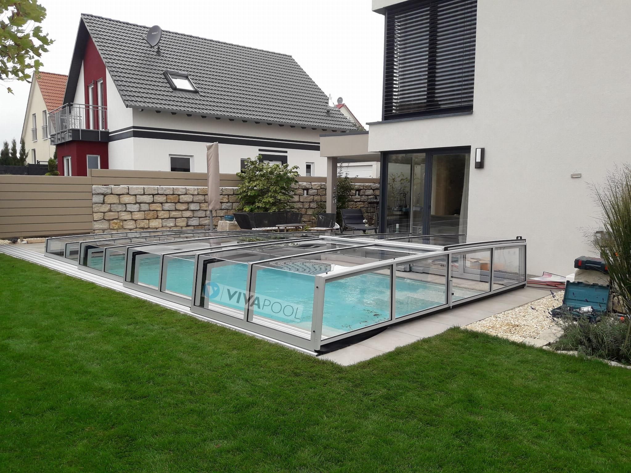 Nowoczesne zadaszenie na basen PRESTIGE R1 z jedną prowadnicą 10,29 x 4,50 x 0,75 PC lity MOCNE Radomsko