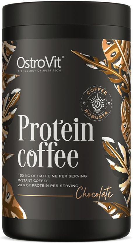 Składniki: Koncentrat białek serwatkowych z mleka [zawiera lecytyny (1); lecytyny z soi (2)], kawa naturalna robusta, izolat białka serwatkowego z mleka [zawiera lecytyny (1); lecytyny z soi (2)], substancja zagęszczająca: guma ksantanowa; aromat, kofeina bezwodna, substancje słodzące: sukraloza, acesulfam K. W zależności od rodzaju użytej lecytyny symbol (1-2) znajduje się w pobliżu daty minimalnej trwałości. Produkt może zawierać soję, orzeszki ziemne, inne orzechy, nasiona sezamu, zboża zawierające gluten, jaja, skorupiaki, ryby. Suplement diety w proszku. Zawiera kofeinę. Zawiera substancje słodzące. 1 porcja / 100 g zawiera: Kofeina - 150 mg /500 mg, Wartość energetyczna - 438 kJ / 105 kcal / 1460 kJ / 350 kcal, Tłuszcz: 0.9 g / 3.1 g, w tym kwasy tłuszczowe nasycone - 0.5 g / 1.6 g, Węglowodany: 3.9 g / 13 g, w tym cukry - 0.3 g / 0.9 g, Błonnik - 1.1 g / 3.5 g, Białko - 20 g / 65 g, Sól - 0.13 g / 0.44 g. Masa netto: 360 g Właściwości: OstroVit Protein Coffee to produkt, który bazuje na naturalnej kawie robusta, wyróżniającej się wyrazistym i intensywnym aromatem. Jednocześnie preparat stanowi źródło bezwodnej kofeiny, będącej organicznym związkiem chemicznym z grupy alkaloidów purynowych, która jest powszechnie wykorzystywana zarówno przez sportowców, jak i osoby pracujące umysłowo, i stanowi substancję występującą w formie proszku, która wyróżnia się świetną rozpuszczalnością w wodzie. W produkcie można znaleźć także białko serwatkowe, czyli substancję, która powstaje z serwatki i stanowi składnik uboczny produkcji sera. To zwierzęce źródło protein, które wykorzystywane jest przez osoby aktywne fizycznie, niezależnie od celu treningowego, poziomu wytrenowania i doświadczenia, ponieważ przyczynia się do wzrostu masy mięśniowej i pomaga w utrzymaniu masy mięśniowej, a także wspiera zachowanie zdrowych kości. W preparacie OstroVit Protein Coffee można znaleźć dwa rodzaje białek serwatki - koncentrat białka serwatkowego (WPC) oraz izolat białka serwatki (WPI), czyli związki, które wyróżniają się wysoką wartością biologiczną, dobrą rozpuszczalnością i świetną przyswajalnością w ludzkim organizmie. Zalecane dzienne spożycie: Porcję 30 g (3 miarki) rozpuścić w 200 ml mleka lub wody. Spożywać raz dziennie. Przeciwwskazania: Nadwrażliwość na którykolwiek ze składników preparatu. W okresie ciąży i karmienia piersią przed zastosowaniem należy skonsultować się z lekarzem lub farmaceutą. Przechowywanie: Przechowywać w temperaturze 15-25°C, w zamkniętym opakowaniu, w suchym miejscu. Chronić przed bezpośrednim działaniem promieni słonecznych. Producent: OstroVit Sp. z o.o. ul. Sitarska 16 18-300 Zambrów