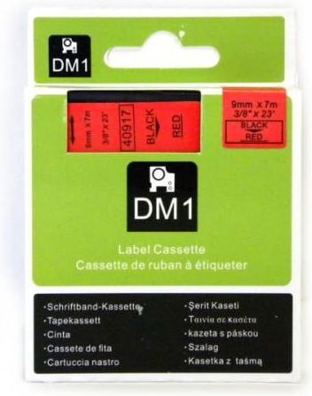 Zamiennik taśmy do drukarek etykiet Dymo 40917 Czarny nadruk na czerwonej taśmie Rozmiar 9mm Długość 7m taśmy są w 100% zgodne z drukarkami etykiet Dymo Pasuje do:LabelManager – LM 120P, LM 210D, LM 220P, LM 260P, LM 360D, LM 450D, LM PC IILabelPoint – LP 350LabelWriter – LW 400 Duo, LW 450 …