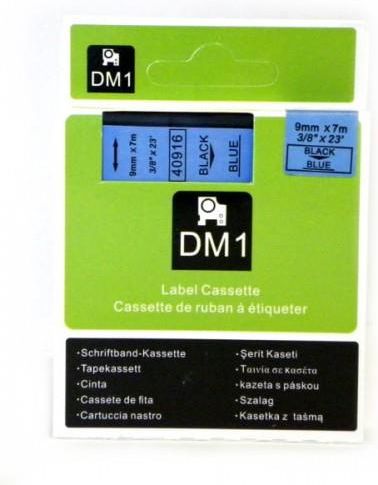 Zamiennik taśmy do drukarek etykiet Dymo 40916 Czarny nadruk na niebieskiej taśmie Rozmiar 9mm Długość 7m taśmy są w 100% zgodne z drukarkami etykiet Dymo Pasuje do:LabelManager – LM 120P, LM 210D, LM 220P, LM 260P, LM 360D, LM 450D, LM PC IILabelPoint – LP 350LabelWriter – LW 400 Duo, LW 450 …
