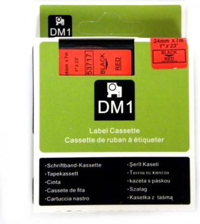 Zamiennik taśmy do drukarek etykiet Dymo 53717 Czarny nadruk na czerwonej taśmie Rozmiar 24mm Długość 7m taśmy są w 100% zgodne z drukarkami etykiet Dymo Pasuje do:LabelManager – LM 360D, LM 450D, LM PC IILabelPoint – LP 350LabelWriter – LW 400 Duo, LW 450 DuoRhinoPro – ILP 219, Rhino 5000, Rhino …
