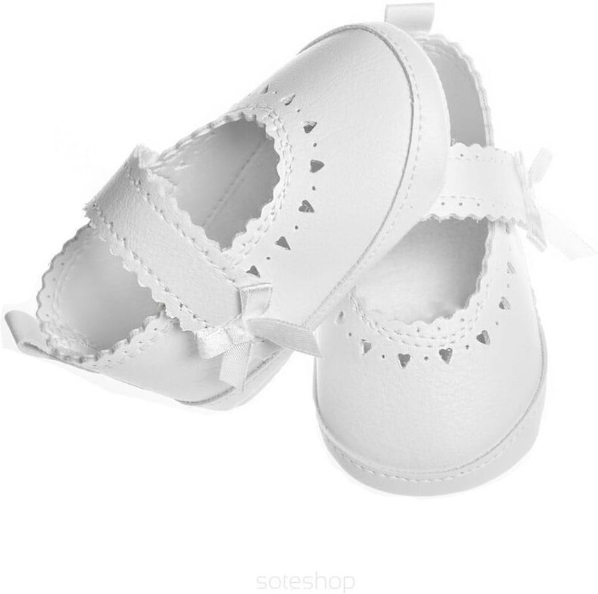 Stylowe buciki dziewczęce doskonale sprawdzą się podczas takich uroczystości jak na przykład Chrzest Święty. Skórzana baletka z wyciętymi ozdobnymi serduszkami zapinana na rzep. Tkanina zewnętrzna: eko-skóra Tkanina wewnętrzna: włóknina obuwnicza Spód: porden Produkt pochodzi od zaufanego polskiego producenta.
