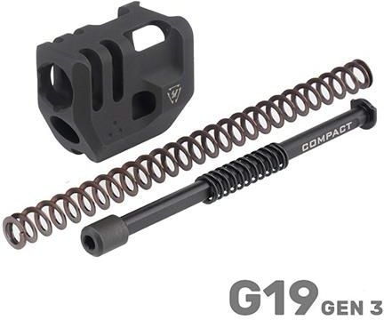 Mass Driver Comp to kompensator do pistoletu Glock 19 Gen 3 od firmy Strike Industries. Montaż kompensatora jest możliwy bez konieczności posiadania nagwintowanej od zewnątrz lufy. Dzięki montażowi kompensatora zostaje ograniczony odrzut i podrzut broni. Kształt kompensatora umożliwia korzystanie z …
