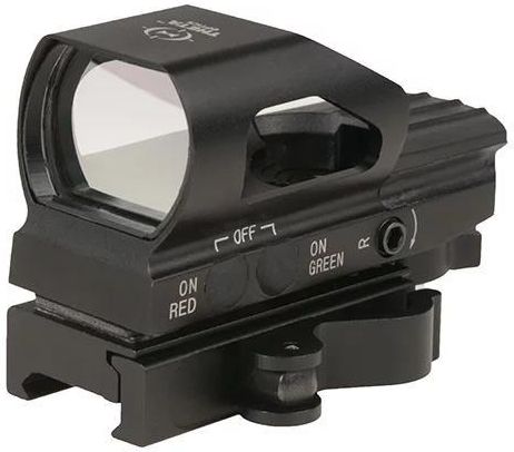 Replika celownika kolimatorowego Spider Celownik kolimatorowy Theta Optics Open zasilany trzema bateriami LR41, umożliwia użycie zielonej lub czerwonej plamki celowniczej do prowadzenia działań zarówno dziennych, jak i nocnych. Punkt celowniczy możemy płynnie wyregulować w pionie i poziomie, posiada on także kilka stopni natężenia. Użytkownik posiada możliwość wyboru pomiędzy czterema różnymi punktami celowniczymi. Montowany na standardowej szynie RIS 22mm, kolimator pozwala na błyskawiczne i precyzyjne celowanie. Celem Theta Optics jest nie tylko dostarczanie wysokiej jakości sprzętu optycznego, lecz również ciągłe wzbogacanie oferty innowacyjnymi rozwiązaniami spotykanymi w produktach wyższej klasy. Przed wprowadzeniem na rynek każdy z modeli przechodzi szereg testów. Theta Optics to propozycja dla osób szukających wysokiej jakości za rozsądną cenę. W zestawie znajduje się: - kolimator - klucze imbusowe - instrukcja obsługi - ściereczka do czyszczenia - baterie zasilające - Napęd / zasilanie: 3 x LR41 - Optyka: Kolimatory - Podświetlenie punktu celowniczego: czerwony, zielony - Regulacja: pion, poziom - Typ montażu: RIS 22mm
