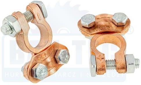 KLEMY DO AKUMULATORA SAMOZACISKOWE 600A Specyfikacja produktu: Akumulatorowe klemy 600A do akumulatora samochodowego o napięciu 12V klema na biegun dodatki (+) klema na biegun ujemny (-)