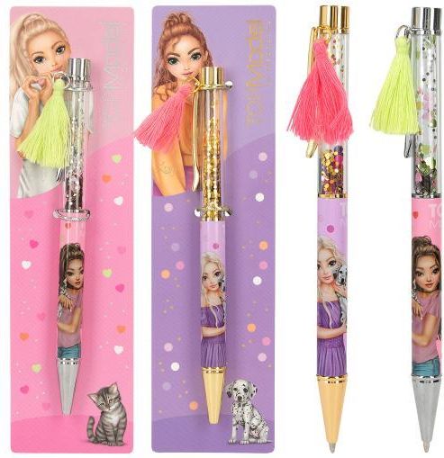 Konfetti, frędzle, TOPModel - idealne połączenie ulubionego długopisu. Długopis w dwóch wzorach: fioletowo-złoty z różowym frędzlem i pasujące konfetti srebrno-różowy z limonkowo-zielonym frędzlem i pasujące konfetti ma wymienny wkład z niebieskim atramentem. Górna część długopisu jest przezroczysta, a wielokolorowe konfetti porusza się tam i z powrotem podczas pisania. Uwaga! Wysyłamy kolor losowy.