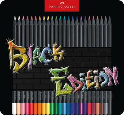Kredki Faber Castell Black Edition w wielu kolorach Kredki ołówkowe Faber Castell Black Edition z czarnego drewna o ergonomicznym, trójkątnym przekroju. Super miękki grafit odpowiedni do kolorowego i czarnego papieru. Intensywne, nasycone kolory. Spieralne z większości standardowych tkanin. …