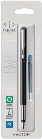 Parker Vector pióro wieczne Standard Black CT czarne z chromowanym wykoczeniem stalówka medium niebieski atrament opakowanie typu blister. Poznaj zasady dobrego pisania uywajc pióra wiecznego PARKER Vector. Poczenie trwaego i niezawodnego produktu z nowoczesnym, ostro zarysowanym stylem, jest idealnym sposobem na pokazanie swojej kreatywnoci i umiejtnoci pisarskich. Pióro wieczne wyposaone jest w gadki atrament Quink i ma trwa stalówk ze stali szlachetnej, która zapewnia wygodne i dokadne pisanie za kadym razem, gdy przenosisz swoje myli na papier.