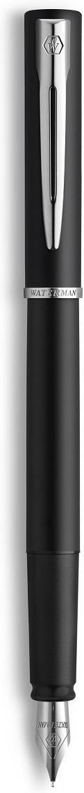 Długopis Waterman Allure to nowoczesny, stylowy design odpowiedni zarówno dla osób uczących się, jak i profesjonalistów.Idealnie czarny kolor plus cudowne, srebrne wykończenia składają się na pióro wieczne Waterman Allure czarne matowe CT. To pióro, które zachwyca na pierwszy rzut oka. Nie jest to jednak koniec pochwał i komplementów, które towarzyszą temu produktowi piśmienniczemu. Bo oprócz pięknego wyglądu, pióro to wzbudza podziw z uwagi na swoją wyjątkową jakość. Jest ono wykonane z bardzo dobrych materiałów, które zapewniają wyjątkową jakość oraz używanie pióra przez wiele lat. Stalówka została wykonana ze stali nierdzewnej znakomitego gatunku, podobnie pozostałe elementy pióra. Sprawia to, iż pisanie piórem Allure zapewnia przyjemność oraz sprawia mnóstwo radości. Tym samym ten produkt piśmienniczy znakomicie nadaje się do codziennego użytkowania.Pióro Waterman Allure należy do grupy piór, które cieszą się znakomitą renomą na świecie. Jest to marka, która swoją pozycję zbudowała sobie na przestrzeni lat poprzez dbałość o klienta oraz o najlepsze parametry swoich produktów. Waterman Allure Black posiada stalówkę w rozmiarze F, tzn. cienką oraz nabój wymienny. Pióra używać można z tłoczkiem, który dokupić należy oddzielnie.