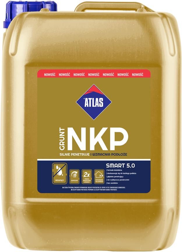 ATLAS GRUNT NKP Silnie penetruje i wzmacnia podłoże KOLOIDALNA FORMULA - ATLAS GRUNT NKP jest inteligentną koloidalną kombinacją cząstek polimeru różnego rodzaju i różnej wielkości, rozpoznającą podłoże, na którą jest aplikowana. W zależności od potrzeb: - głęboko penetruje porowatą strukturę …