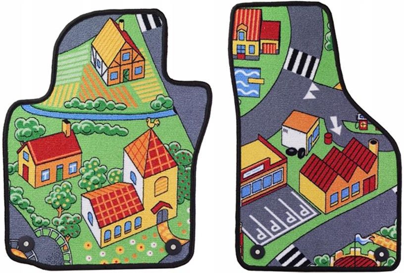 Dywaniki samochodowe welurowe przednie Ulica, 2 szt. W informacji do sprzedającego podaj model auta Dywaniki welurowe samochodowe o oryginalnym, nieszablonowym wzorze. Wykładzina przedstawia: zabudowę wiejską z drogami domki ronda owce szpital oraz wiele innych elementów Wspaniałe dywaniki dla …