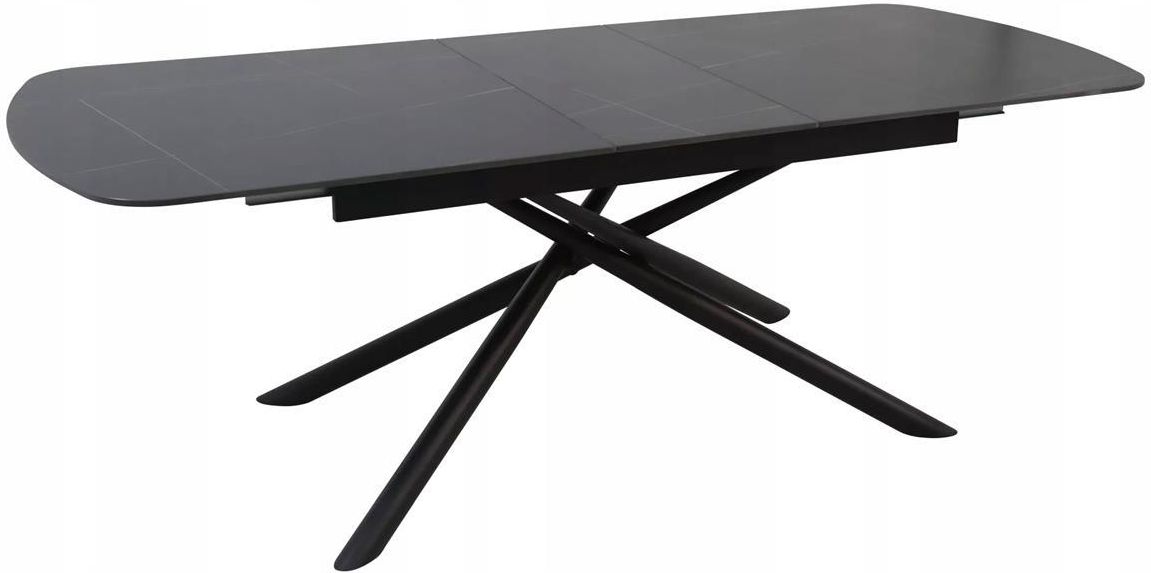Signal Meble - Elegancja, Funkcjonalność, Unikalny Styl Rozkładany stół jadalniany 160(200)x90 Nowoczesna elegancja w funkcjonalnym wydaniu – taki właśnie jest stół rozkładany VECTOR 180(220)x90 czarny. Kultowy model od polskiej marki Signal to propozycja skierowana do świadomych estetów poszukujących harmonii pomiędzy wyrafinowanym designem a codzienną użytecznością. Model ten stanowi wyważone połączenie minimalistycznej formy i ponadczasowej elegancji, która odnajdzie się w różnych aranżacjach, nie tylko tych modernistycznych. Czarne wykończenie podkreśla klasę mebla, wpisując się doskonale w aktualne trendy wnętrzarskie. Jeśli chcesz dodać swojej przestrzeni charakteru – ceramiczny stół będzie trafionym wyborem. Dane Techniczne Wysokość: 75 cm Szerokość: 90 cm Długość: 180 cm Długość po rozłożeniu: 220 Rozmiar stołu: 90x180 Ilośc osób: 12 osób Regulowane: Tak Kształt blatu: Prostokątny Regulacja wysokości: Nie Typ stołu: Stoły do salonu, Stoły do jadalni, Rozkładane Przeznaczenie: Salon, Jadalnia Materiał blatu: Ceramika Kolor blatu: Czarny mat Materiał nóg: Metal Kolor nóg: Czarny Styl: Loft Duży ceramiczny stół jadalniany Konstrukcja tego minimalistycznego stołu została zaprojektowana z myślą o trwałości i komforcie użytkowania przez długie lata. Właśnie dlatego blat został wykonany z ceramiki w matowej czerni, charakteryzującej się wysoką odpornością na zarysowania, temperaturę i wilgoć. Stabilna podstawa w formie krzyżujących się metalowych nóg gwarantuje bezpieczeństwo nawet przy pełnym rozłożeniu stołu, a dyskretny, intuicyjny mechanizm rozsuwania zapewnia płynną obsługę. W efekcie stół można poszerzyć z 160 do 200 cm. Dodatkowym atutem są także zaokrąglone brzegi stołu – co jest szczególnie istotne w domach, w których są małe dzieci. Nowoczesny stół do jadalni i salonu Pomimo swojej oczywistej wyrazistości, czarny stół rozkładany to mebel bardzo wszechstronny. Dzięki przemyślanej formie i eleganckiemu wybarwieniu znakomicie odnajduje się zarówno w otwartych strefach dziennych, jak i w bardziej kameralnych wnętrzach, także tych komercyjnych. Co więcej, jego klasyczna barwa pasuje do wielu palet kolorystycznych – tych jasnych, neutralnych, ale i mocno wyrazistych. Możesz dopełnić nim aranżację nowoczesne, te minimalistyczne, ale również klasyczne, które dopełnisz tapicerowanymi krzesłami. Jako centralny punkt jadalni czy reprezentacyjnego salonu, ten duży stół sprawi, że każdy wspólnie spędzony posiłek, będzie celebracją, wartą zapamiętania. NAJWAŻNIEJSZE CECHY Wygodne rozkładanie – stół daje możliwość dopasowania wielkości do liczby gości, co czyni go idealnym rozwiązaniem do małych i dużych przestrzeni; Nowoczesny design – czarna kolorystyka i prosta, ale elegancka forma sprawiają, że stół doskonale pasuje do nowoczesnych wnętrz; Wysoka jakość wykonania – stół jest wykonany z solidnego metalu i ceramiki, które zapewniają długowieczność mebla; Wszechstronność – można go wykorzystać w jadalni, kuchni lub przestronnym salonie; Brak ostrych krawędzi – zaokrąglone brzmi i rogi stołu to ważny aspekt, szczególnie gdy w domu są małe dzieci.