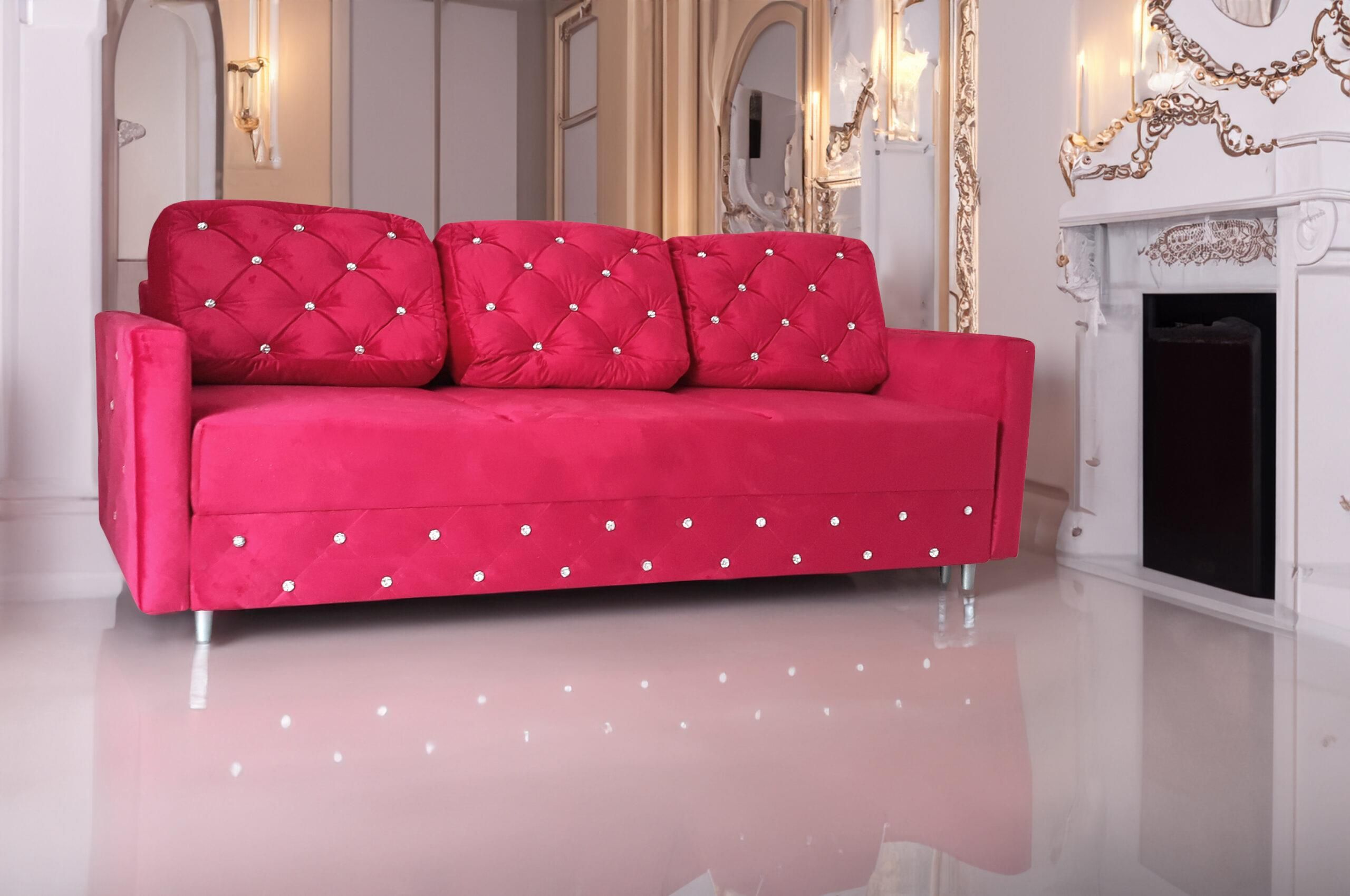 ELEGANCKA SOFA BLINK kompaktowy wymiar funkcja spania dla dwóch osób rozkładana do przodu ze schowkiem na pościel sofa w różnych kolorach idealna do aranżacji wnętrz salonu w stylu glamour, eleganckim i nowoczesnym Zdjęcie przedstawia realny wygląd produktu. Nie jest wizualizacją komputerową. Sofa …