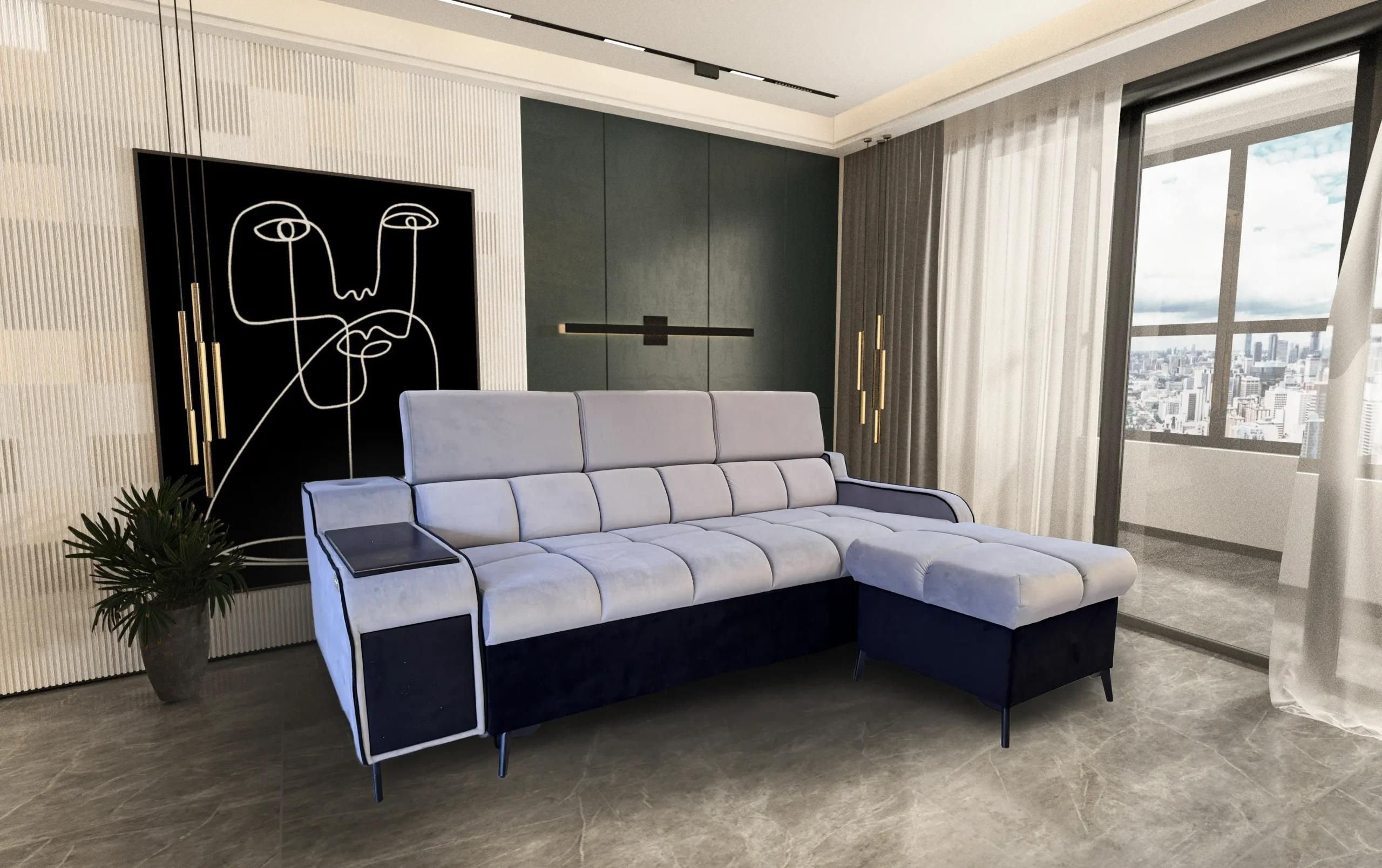 Sofa Preston III funkcja spania Puma + PufaZDJĘCIE PRZEDSTAWIA REALNY WYGLĄD SOFY. NIE JEST WIZUALIZACJĄ KOMPUTEROWĄ. Nowoczesny design i komfort na najwyższym poziomie Sofa Preston III to stylowe i funkcjonalne rozwiązanie dla każdego salonu. Dzięki dostawianej pufie zestaw prezentuje się jak elegancki narożnik, oferując jednocześnie więcej przestrzeni do wypoczynku. Rozkładanie typu Puma zapewnia wyjątkowy komfort i prostotę użytkowania, a powierzchnia spania o wymiarach 130x190 cm sprawdzi się doskonale na co dzień lub okazjonalnie. Wysokie, 12-centymetrowe nogi dodają lekkości całej bryle, a starannie wykonane pikowania i przeszycia – dostępne z kontrastową lamówką lub w wersji gładkiej – podkreślają jej wyjątkowy charakter. Pufa o wymiarach 65x65 cm wyposażona jest w praktyczny schowek, idealny na drobiazgi. Funkcjonalność spotyka elegancję Preston III to nie tylko wygoda i estetyka, ale również funkcjonalność. W jednym z podłokietników znajdziesz praktyczny barek – idealny na drobne akcesoria, przekąski lub ulubione napoje. Dodatkowo wbudowana półeczka z zestawem trzech gniazdek 230V pozwala ładować urządzenia bez konieczności sięgania po przedłużacz. To mebel, który spełni oczekiwania nawet najbardziej wymagających użytkowników – łączy piękny wygląd, komfort użytkowania i nowoczesne funkcje. Wymiary Całość: 240 cm Funkcja spania: 130x190 cm Dysponujemy tkaninami plamoodpornymi łatwo czyszczącymi firmy Fargotex i wielu innych producentów.SZEROKI WYBÓR TKANIN I KOLORÓW WYBARWIENIA DREWNA, ZNAJDUJĄ SIĘ NA STRONACH PONIŻEJ:TKANINY OBICIOWEPracujemy wyłącznie na sprawdzonych produktach polskich i zagranicznych producentów (nie korzystamy z wschodnich podróbek). Naszym priorytetem jest dokonanie wszelkich starań, aby Nasi klienci byli zadowoleni.Meble wykonane są z wysokiej jakości polskich materiałów.Aby uzyskać więcej informacji, proszę o kontakt z naszymi sprzedawcami: Tel: 788 509 803Tel: 661 442 118 Istnieje możliwość obejrzenia oferowanych przez naszą firmę mebli przez 6 dni w tygodniu. Od poniedziałku do piątku w godzinach 8:00-17:00 oraz w sobotę od godziny 8:00 do 12:00 w siedzibie naszej firmy. UWAGA! WNOSZENIE TOWARU W ZAKRESIE KLIENTA! MEBLE MIESZCZĄ SIĘ W DRZWIACH 80 CM.Czas realizacji zamówienia od 3 do 6 tygodni. Możliwy szybszy czas realizacji, jeśli dany model znajduje się na stanie magazynowym.