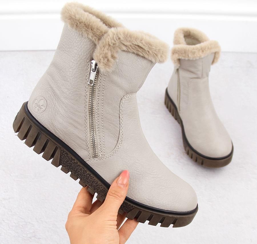 Botki damskie z futerkiem beżowe Rieker Y3481-60 Radziejów