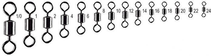 Rozmiary i wytrzymałości: 1/0-65 kg, 2-55 kg, 4-45 kg, 6-40 kg, 8-38 kg, 10-30 kg, 12-28 kg, 14-25 kg, 16-20 kg, 18-16 kg, 20-12 kg, 22-8 kg, 24-5 kg.