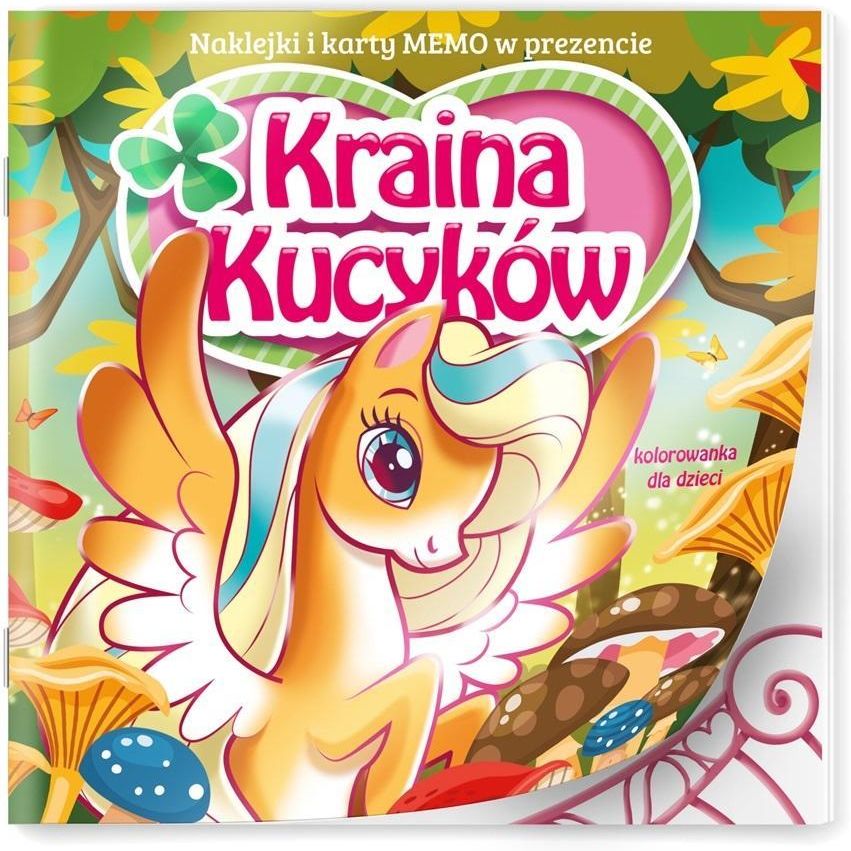 Kolorowanka Kraina Kucyków to kolorowanka dla wszystkich fanek/fanów koni i kucyków. Wesołe postacie kucyków wprowadzają odbiorców w bajkową atmosferę i oprowadzają dziecko po swojej krainie, rozwijając jego wyobraźnię, sprawność manualną oraz plastyczną. Dodatkowy atut publikacji stanowi zestaw kolorowych naklejek.