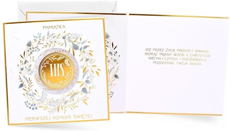 Kartki z serii Primus, to kartki najwyższej jakości, pięknie zdobione m.in złotą lub srebrną folią, tłoczeniami, czy wycinkami laserowymi. W środku każdej kartki znajdują się dobrane do okazji życzenia, a do kartki dołączona jest dopasowana koperta. Cechy szczególne: wymiary: 175 x 250 mm (po złożeniu) zdobienia: dekoracje ze złotej folii, doklejane koraliki, tłoczenia koperta: dopasowana w komplecie, wnętrze kartki: życzenia w środku, okazja: Komunia