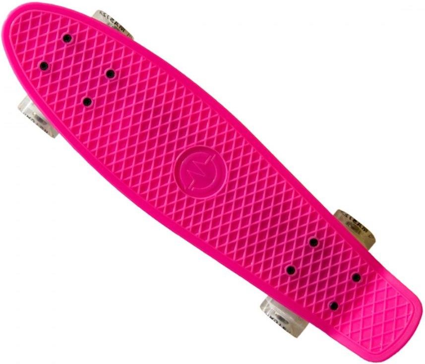 Deskorolka MASTER 22 z świecącymi kółkami - Różowa Master Penny board MASTER 22" jest deskorolką wytworzoną z tworzywa sztucznego z luminescyjnymi kółkami. Kółka zaczynają się świecić wtedy, gdy są wprowadzane w ruch. Wbudowane diody LED są zasilane przez powstawanie energii elektromagnetycznej. …