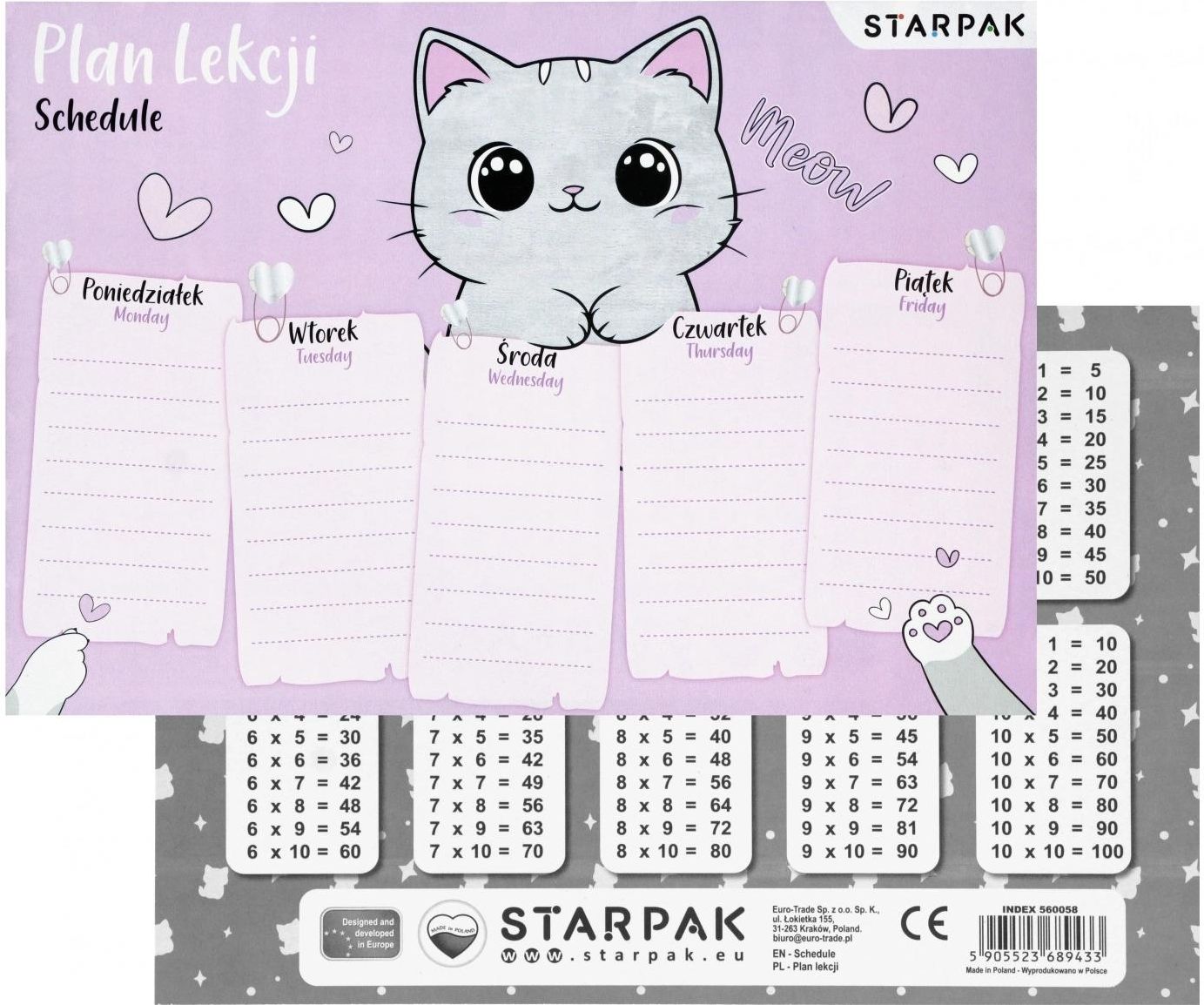Starpak Plan Lekcji Tabl Mnoz A5 Kitty Pb A 25 750 Radziejów