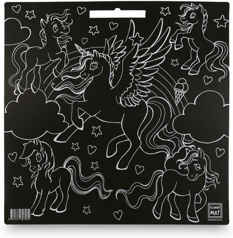 Czarna mata Strigo Funny Mat Unicorns 40x40 cm + kreda Strigo ✅ ✔️ Szukasz wyjątkowego produktu, który nie tylko rozbawi Twoje dziecko, ale także zapewni mu edukacyjną rozrywkę. W takim razie witamy Cię w kolekcji "Strigo Funny Mat" - rewolucyjnych podkładkach, które bawią, uczą i chronią! …