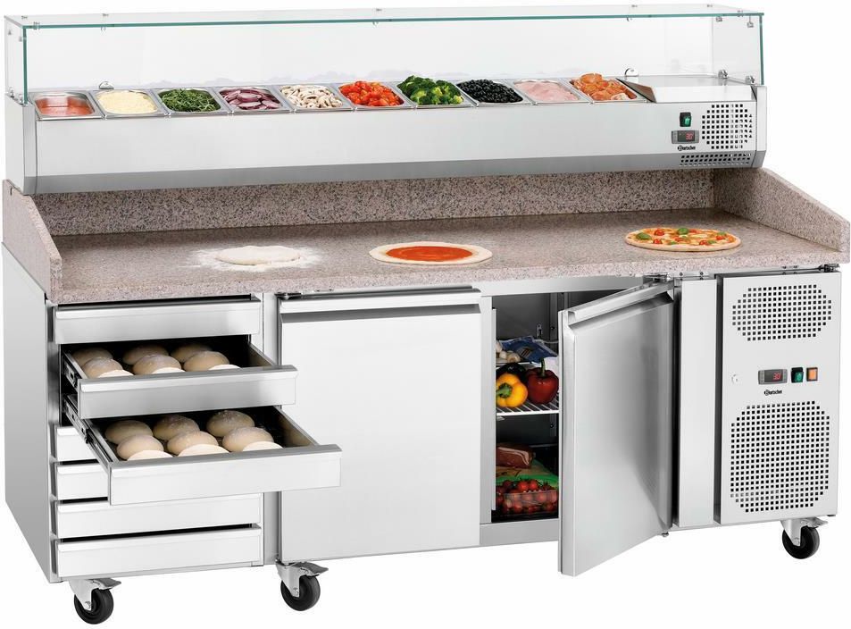 Profesjonalny Stół Chłodniczy Do Pizzy 2015x795x975 Bartscher 200297 - 200297 OPIS Stół chłodniczy do pizzy G-S7T2, wyposażony w 7 szuflad na zamrożone ciasto oraz obszerną płytę roboczą z granitu, jest perfekcyjnym punktem centralnym każdej pizzerii. Składniki przechowywane w chłodzonej, …
