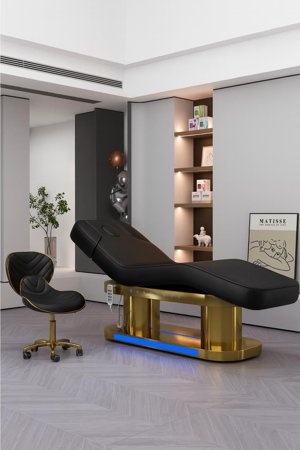 Przedsprzedaż! Przedmiot dostępny jest w przedsprzedaży, co wiąże się z dłuższym czasem realizacji zamówienia. Prosimy o uwzględnienie wydłużonego terminu wysyłki podczas składania zamówienia. Zdjęcie podglądowe faktyczny produkt może posiadać delikatne różnice wizualne. Łóżko do masażu elektryczne Najnowszy model na rok 2025 Łóżko do masażu marki Calissimo, rewolucjonizuje świat zabiegów kosmetycznych i pielęgnacyjnych. Ten wyjątkowy produkt łączy w sobie najnowocześniejsze technologie z ponadczasowym wzornictwem, gwarantując komfort zarówno dla klientów, jak i specjalistów. Dodatkową zaletą jest ściągana poduszka znajdująca się w zagłówku. Cechy Wzmocnione aluminiowe wsporniki zapewniające większą wytrzymałość Wysokiej jakości materiały Funkcja grzania Elegancki i nowoczesny wygląd Komfort i ergonomia Łatwość w czyszczenia i utrzymaniu 4 siłowniki elektryczne Wyciągana poduszka Sterowanie na dwa sposoby: pilot ręczny + wbudowany panel nożny w podstawie Siedzisko zostało pokryte ekoskórą, która jest nie tylko miękka i przyjemna w dotyku, ale również wyjątkowo łatwa w utrzymaniu czystości. Dzięki zastosowaniu wysokiej jakości materiałów, siedzisko jest odporne na plamy i zużycie, co gwarantuje długotrwały wygląd i higienę. Nasz fotel kosmetyczny wyznacza nowe standardy w zakresie wszechstronności. Dzięki możliwości rozłożenia do pełnych 180°, model ten doskonale sprawdzi się jako wygodna leżanka. Idealne rozwiązanie do zabiegów wymagających wysokiego komfortu klienta, takich jak masaże, czy wybrane zabiegi kosmetyczne. Podgrzewane siedzisko! Wbudowany system podgrzewania fotela pozwala szybko osiągnąć przyjemną temperaturę, która sprzyja odprężeniu mięśni i poprawia komfort zabiegu, szczególnie w chłodniejsze dni. To rozwiązanie doceni każdy klient, a Ty zyskasz dodatkowy atut w swojej ofercie. Każdy aspekt fotela został zaprojektowany z myślą o najwyższych standardach, co czyni go idealnym wyborem dla salonów kosmetycznych, które pragną oferować swoim klientom luksus i wygodę na najwyższym poziomie. Wyposażony w innowacyjne elektryczne silniki, fotel umożliwia niezwykle łatwą i precyzyjną regulację elementów. Dzięki temu, zarówno specjalista, jak i klient mogą cieszyć się idealnie dopasowanym ustawieniem fotela, co jest kluczowe dla efektywności zabiegów. Regulacja odbywa się płynnie i cicho, zapewniając nienaruszoną atmosferę relaksu. W skład fotela wchodzą Siedzisko wraz z podstawą Zagłówek Pilot do regulacji fotela Wbudowany panel nożny w podstawie