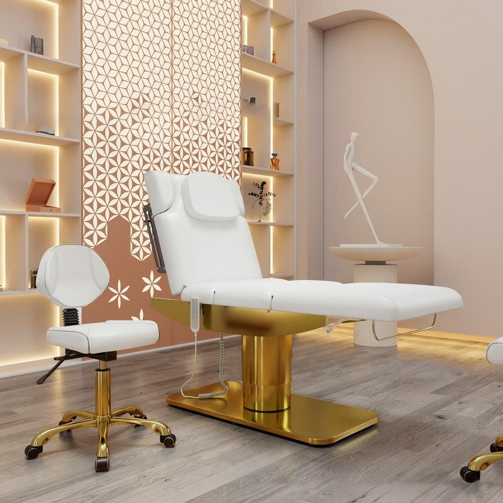 Przedsprzedaż! Przedmiot dostępny jest w przedsprzedaży, co wiąże się z dłuższym czasem realizacji zamówienia. Prosimy o uwzględnienie wydłużonego terminu wysyłki podczas składania zamówienia. Zdjęcie podglądowe faktyczny produkt może posiadać delikatne różnice wizualne. Łóżko do masażu elektryczne Najnowszy model na rok 2025 Łóżko do masażu marki Calissimo, rewolucjonizuje świat zabiegów kosmetycznych i pielęgnacyjnych. Ten wyjątkowy produkt łączy w sobie najnowocześniejsze technologie z ponadczasowym wzornictwem, gwarantując komfort zarówno dla klientów, jak i specjalistów. Dodatkową zaletą jest ściągana poduszka znajdująca się w zagłówku. Cechy Wzmocnione aluminiowe wsporniki zapewniające większą wytrzymałość Wysokiej jakości materiały Funkcja grzania Elegancki i nowoczesny wygląd Komfort i ergonomia Łatwość w czyszczenia i utrzymaniu 4 siłowniki elektryczne Wyciągana poduszka Sterowanie na dwa sposoby: pilot ręczny + wbudowany panel nożny w podstawie Siedzisko zostało pokryte ekoskórą, która jest nie tylko miękka i przyjemna w dotyku, ale również wyjątkowo łatwa w utrzymaniu czystości. Dzięki zastosowaniu wysokiej jakości materiałów, siedzisko jest odporne na plamy i zużycie, co gwarantuje długotrwały wygląd i higienę. Nasz fotel kosmetyczny wyznacza nowe standardy w zakresie wszechstronności. Dzięki możliwości rozłożenia do pełnych 180°, model ten doskonale sprawdzi się jako wygodna leżanka. Idealne rozwiązanie do zabiegów wymagających wysokiego komfortu klienta, takich jak masaże, czy wybrane zabiegi kosmetyczne. Podgrzewane siedzisko! Wbudowany system podgrzewania fotela pozwala szybko osiągnąć przyjemną temperaturę, która sprzyja odprężeniu mięśni i poprawia komfort zabiegu, szczególnie w chłodniejsze dni. To rozwiązanie doceni każdy klient, a Ty zyskasz dodatkowy atut w swojej ofercie. Każdy aspekt fotela został zaprojektowany z myślą o najwyższych standardach, co czyni go idealnym wyborem dla salonów kosmetycznych, które pragną oferować swoim klientom luksus i wygodę na najwyższym poziomie. Wyposażony w innowacyjne elektryczne silniki, fotel umożliwia niezwykle łatwą i precyzyjną regulację elementów. Dzięki temu, zarówno specjalista, jak i klient mogą cieszyć się idealnie dopasowanym ustawieniem fotela, co jest kluczowe dla efektywności zabiegów. Regulacja odbywa się płynnie i cicho, zapewniając nienaruszoną atmosferę relaksu. W skład fotela wchodzą Siedzisko wraz z podstawą Zagłówek Pilot do regulacji fotela Wbudowany panel nożny w podstawie