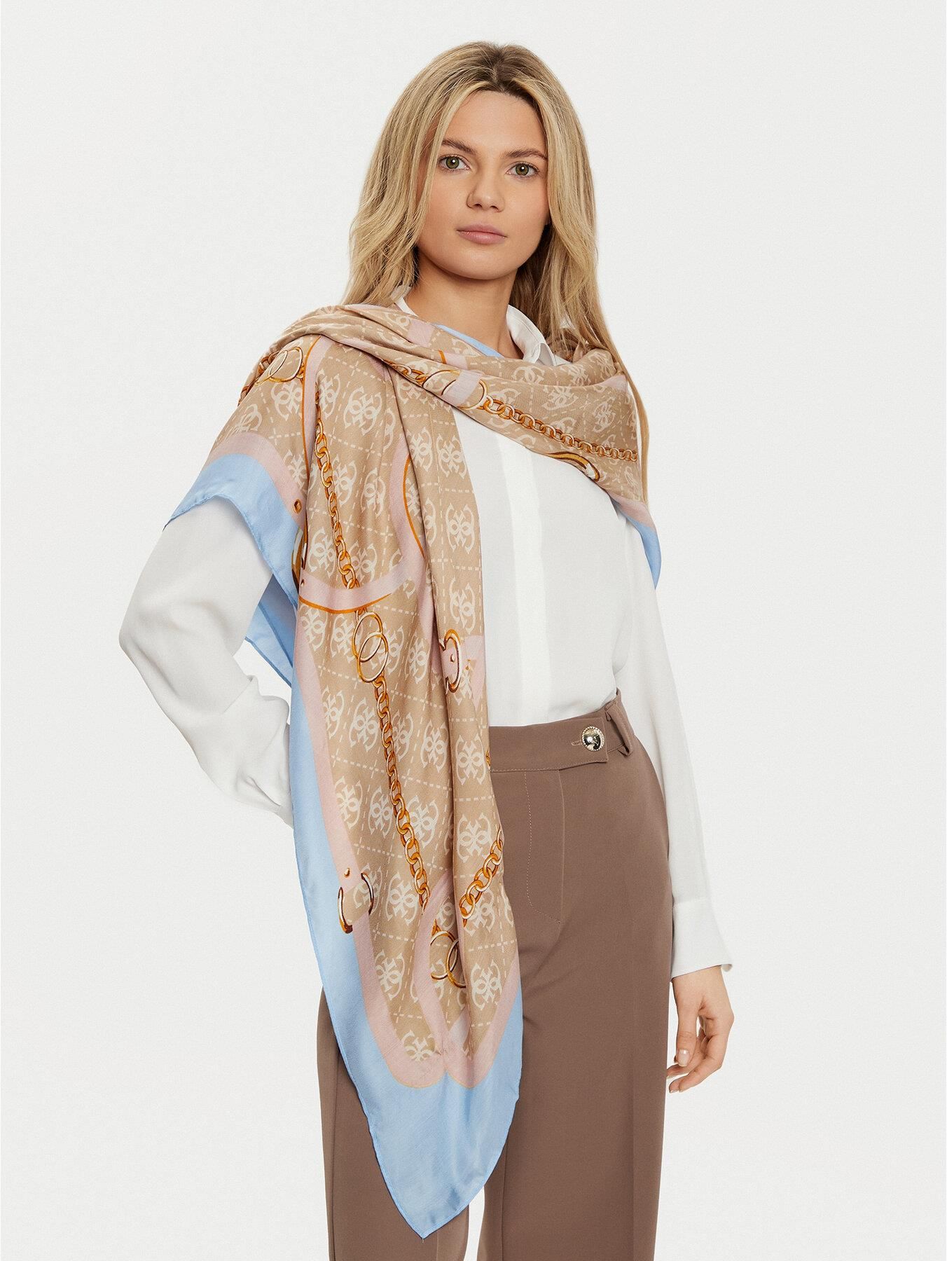 Dodaj elegancji i stylu swojemu lookowi dzięki tej wyjątkowej apaszce damskiej marki Guess. Wykonana z wysokiej jakości wiskozy, zapewnia komfort noszenia oraz subtelny, naturalny wygląd. Materiał: 100% wiskoza – lekka, miękka i przyjemna w dotyku, idealna na co dzień i na specjalne okazje. Wymiary: 130 x 130 cm – doskonałe do różnorodnych stylizacji, od klasycznego wiązania po kreatywne ozdoby. Design: Chusta z charakterystycznym printem logo 4G oraz motywem łańcuszka, dodającym elegancji i luksusowego charakteru. Ta uniwersalna apaszka świetnie uzupełni zarówno codzienne, jak i eleganckie stylizacje. Doskonale sprawdzi się jako akcent do sukienek, bluz, marynarek czy płaszczy.