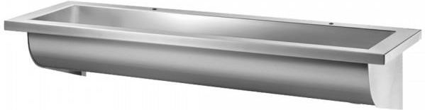 umywalka zbiorowa mocowana na ścianie, 2 stanowiska - 1200 mm bakteriostatyczny Inox 304 wykończenie satynowe grubość Inoxu: komora 0,8 mm, ranty oraz wsporniki kątowe 1,5 mm łatwa instalacja: brak konieczności instalacji maskownic łączeń, umywalka jest lekka możliwość zainstalowania armatury ściennej lub stojącej odpływ z prawej strony z 2 otworami na armaturę Ø22 dostarczana z higienicznym korkiem 1"1/4 z wklęsłym sitkiem. Bez przelewu dostarczana z mocowaniami znak CE. Produkt zgodny z normą PN-EN 14296 możliwość dodania ścianki ze stali nierdzewnej (nr 100250) kolor: inox satynowy