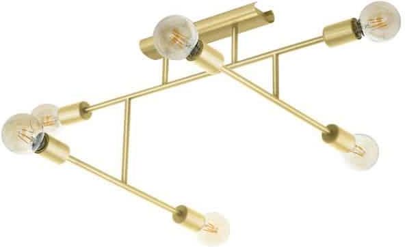 Lampa sufitowa serii BELSIANA 1. Metalowa rama ze szczotkowanego mosiądzu połączona jest z sześcioma widocznymi oprawami oświetleniowymi E27. Dzięki dwóm dolnym, regulowanym ramionom można indywidualnie wpływać na optykę lampy, a tym samym optymalnie oświetlić przestrzeń mieszkalną. Plafon Belsiana …