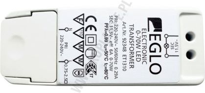 Szczegóły produktu Materiał obudowy: plastik Kolor obudowy: biały Źródło światła w zestawie (1): Brak w komplecie Rodzaj gniazda (1): - Funkcje: Możliwość ściemniania numer artykułu: 92348 Transformator elektroniczny. Moc dla halogenów wynosi 0-70 watów, a dla diod LED 0-40 watów. Sterownik może być również używany jako zamiennik wadliwych sterowników. Dzięki zabezpieczeniom przeciążeniowym, przepięciowym i przeciwzwarciowym można go bez obaw stosować w pomieszczeniach zamkniętych w temperaturach od -20°C do +50°C. Wymiary Długość artykułu (w mm/in): 113 / 4,45 Szerokość artykułu (w mm/in): 44 / 1,73 Wysokość artykułu (w mm/in): 28 / 1,1 Masa netto (w kg): 0,11 Eglo to Lider na rynku oświetleniowym w Europie, którego początki działalności sięgają roku 1976 w Austrii. Od połowy lat 80-tych Firma Eglo otworzyła się na nowe rynki zbytu co sprawiło, że stała się jednym z wiodących producentów oświetlenia. Firma posiada 50 oddziałów na całym świecie umożliwiając tym samym szybka dystrybucję swoich produktów. Stale poszerzająca się oferta jest zgodna z aktualnymi trendami oraz z potrzebami rynku przez co możemy wybierać z bogatej propozycji oświetleniowej w postaci kinkietów, lamp wiszących, plafonów, spotów oraz innych akcesoriów związanych z oświetleniem.