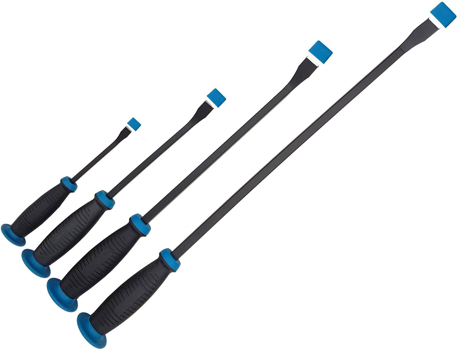 ŁYŻKI MONTAŻOWE DO OPON DŹWIGNIE KOMPLET 4 ELEMENTY WZMACNIANE Łyżki wykonane z utwardzonej stali chromowo - wanadowej, wykorzystywane przy demontażu, podważaniu, wyginaniu lub montowaniu. Wyprofilowane rękojeści pokryte wytrzymałym tworzywem PCV dla zapewniania odpowiedniego chwytu oraz zakończone kapturkiem umożliwiającym pobijanie. Posiadają kątowy wierzchołek, który oferuje dodatkowy punkt dźwigni dla pracy w wąskich obszarach, a zaostrzone końce z dużą łatwością wchodzą między złączone elementy. DŹWIGNIE: 200 mm 300 mm 450 mm 600 mm
