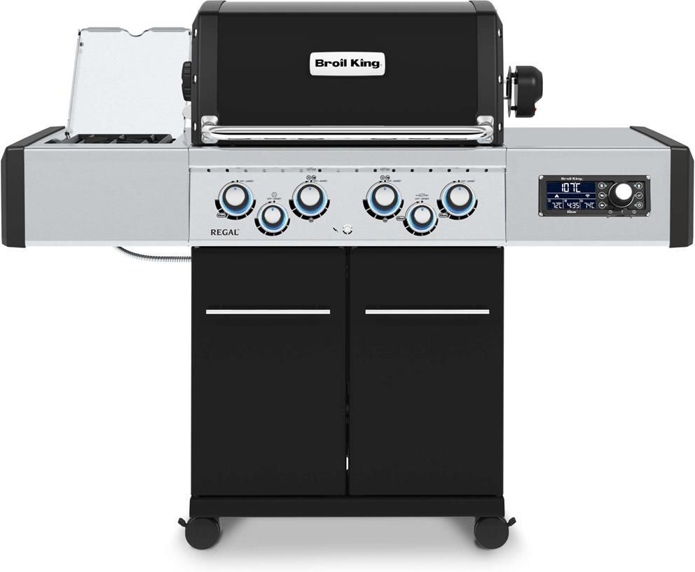 Broil King Regal Q 490 z technologią iQue Harmonijne połączenie elegancji z nowoczesną technologią iQue™, które wprowadza nowy standard do świata grillowania. Dzięki niemu Twoje potrawy nabiorą intensywnego i niezrównanego smaku, a Twój ogród zyska dodatkową ozdobę. Ten grill został wyposażony w zaawansowane rozwiązania marki Broil King, takie jak dwustronny ruszt Flav-R-Cast™ z odlewu żeliwa Dura-Cast™, Aromatyzery Flav-R-Wave™ oraz oświetlenie wewnątrz piekarnika. Panel sterowania iQue™ oferuje intuicyjne sterowanie dzięki elektronicznemu termometrowi Accu-Temp™ oraz pokrętłu do kontroli grilla. Inteligentne grillowanie Korzystaj z różnorodnych technik kulinarnych – wędzenie, pieczenie i grillowanie – z łatwością dzięki technologii iQue™! Uruchom grill, ustal odpowiednią temperaturę, a resztę kontroli pozostaw technologii iQue™! Duży panel sterowania Grille wyposażone są w panel sterowania iQue™ z elektronicznym termometrem Accu-Temp™ oraz pokrętłem do sterowania umieszczone na prawej półce. Jasne podświetlenie ekranu zapewnia czytelność nawet w intensywne światło słoneczne oraz podczas nocnych grillowań. 3 Programy grillowania Panel systemu iQue zawiera 3 predefiniowane przyciski, w tym: WĘDZENIE przy 107°C | PIECZENIE przy 176°C | GRILLOWANIE przy 315°C. Wybór jednej z tych opcji spowoduje rozpoczęcie procesu rozgrzewania grilla do określonej temperatury. Autopilot lub manualne sterowanie Technologia iQue™ to połączenie wygody z nowoczesną technologią. Grillowanie na odległość jest idealnym rozwiązaniem dla osób preferujących wygodę oraz nowoczesne rozwiązania. Dla miłośników tradycyjnego grillowania można korzystać z grilla w manualny sposób. W każdym momencie można przełączyć tryby grillowania. Sterowanie przy pomocy aplikacji iQue Za pomocą aplikacji Broil King iQue™, która łączy się bezprzewodowo z grillem poprzez Wi-Fi 2,4 GHz i Bluetooth, można zdalnie monitorować temperaturę wewnątrz pieca oraz na sondach. Aplikacja umożliwia także kontrolę nad palnikami Dual-Tube™ oraz rożnem. 3 Sondy do pomiaru temperatury Grille gazowe Broil King® wyposażone w technologię iQue™ posiadają trzy wbudowane sondy. Dwie z nich służą do monitorowania temperatury potraw na grillu, a trzecia jest umieszczona w pokrywie pieca do pomiaru temperatury wewnątrz. Sondy można kontrolować zarówno z poziomu grilla, jak i za pomocą aplikacji Broil King® iQue™ Powiadomienia w aplikacji Korzystając z aplikacji Broil King iQue™, użytkownik otrzymuje powiadomienia na telefon, gdy temperatura w piecu grillowym lub potrawie osiągnie ustalony poziom. Dłuższe grillowanie i wędzenie dużych kawałków mięsa staje się łatwiejsze. Podświetlane pokrętła RGB Podświetlane pokrętła informują o osiągnięciu optymalnej temperatury. Podczas rozgrzewania grilla pulsują na czerwono, a po osiągnięciu odpowiedniej temperatury kolor pokręteł wraca do wcześniej ustawionego przez użytkownika koloru. W każdym momencie możemy zmienić kolor pokręteł RGB dzięki aplikacji iQue. Oświetlenie piekarnika Pozwól sobie na grillowanie według własnych preferencji niezależnie od pory dnia, wbudowane oświetlenie piekarniku pozwoli na kontrolę grillowania nawet nocą. Oświetlenie można włączyć z poziomu panelu sterowania, lub aplikacji iQue. Zasilanie z możliwością ładowania urządzeń Sterowania grilla jest zasilane z własnego ogniwa, który może posłużyć za powerbank jako awaryjne źródło prądu. Dwa porty USB-C pozwolą na naładowanie urządzeń mobilnych tj. telefon, tablet lub przenośny głośnik. Główne cechy grilla PGT – Performance Grilling Technology PGT – Performance grilling technology, to opatentowany przez markę Broil King system grillowania oparty na wspólnym działaniu pięciu rozwiązań mających wpływ na wydajność i smak grillowania: piekarnik, ruszty, aromatyzery, palniki, zawory i pokrętła. Palnik boczny Znacznie zwiększa możliwości Twojego grilla. Zagotowanie wody na kawę czy herbatę, zrobienie sosu czy ugotowanie zupy/rosołu do drugiego dania. Czy przy pięknej, słonecznej pogodzie nie przyjemniej będzie zrobić obiad na tarasie lub w przydomowym ogrodzie, zamiast spędzać ten czas w kuchni? Takie możliwości daje właśnie Palnik/Kuchenka umieszczona na półce bocznej, Twojego grilla. Tak wyposażony grill, stanie się centrum Twojej „letniej kuchni” w przydomowym ogrodzie lub na tarasie. W tym modelu ruszt kuchenki, na którym stawiamy naczynia, to masywny żeliwny odlew, pod którym znajduje się solidny palnik wykonany z żeliwa oraz odlewu aluminium. Zestaw rożna obrotowego Soczyste mięso oraz chrupiąca, złocista skórka… Powolne opiekanie udźca z dziczyzny, dużych pieczeni czy całych kurczaków daje rewelacyjne efekty. Powolne obracanie mięsa zapewnia silnik z solidną przekładnią, zasilany elektrycznie. Mięsa, udźce oraz kurczaki mocujemy na pręcie rożna i dociskamy specjalnymi kolcami. Czy przy pięknej, słonecznej pogodzie nie przyjemniej będzie zrobić obiad na tarasie lub w przydomowym ogrodzie, zamiast spędzać ten czas w kuchni? Takie możliwości daje właśnie Palnik/Kuchenka umieszczona na półce bocznej, Twojego grilla. Tak wyposażony grill, stanie się centrum Twojej „letniej kuchni” w przydomowym ogrodzie lub na tarasie. Ruszta żeliwne dwustronne Flav-R-Cast Dwustronność rusztów wpływa na uzyskanie lepszych efektów kulinarnych, w zależności od grillowanych produktów. Żeliwo rozgrzewając się do bardzo wysokich temperatur poprawia walory smakowe przygotowywanych produktów, a za razem zwiększa kumulację ciepła wewnątrz piekarnika, co wpływa na mniejsze zużycie gazu. System Flav-R-Wave™ System Flav-R-Wave wykonany ze stali szlachetniej AISI 304 zapewnia osłonę palników oraz odparowanie soków, które poprawiają smak przygotowanych potraw. Zapewni