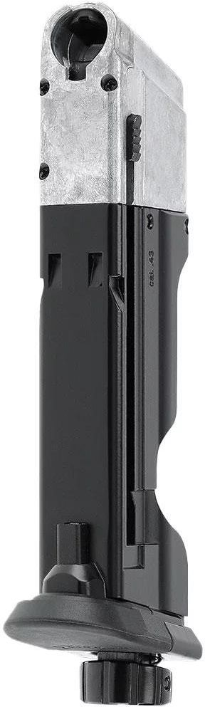 Zapasowy magazynek o pojemności 8 kul, dedykowany do pistoletu RAM na kule gumowe Walther T4E PDP Compact kal. 43. Korpus magazynka jest metalowy, z polimeru wykonano stopkę oraz blokowany podajnik kul. Wewnątrz magazynka znajduje się przedział na 12 g kapsułę CO2 oraz prowadnica na 8 pocisków RAM kalibru .43. Magazynek do pistoletu Walther T4E PDP Compact 4" .43 – cechy Solidna konstrukcja ze stopu aluminium; blokowany podajnik; mieści 8 pocisków RAM .68 oraz kapsułę 12 g CO2; dedykowany do pistoletu RAM Walther T4E PDP Compact kal. 43.