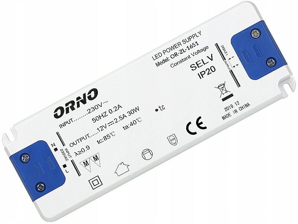 Orno Zasilacz Płaski Do Led 12Vdc 30W Ip20 Wysokość 18Mm Radzionków