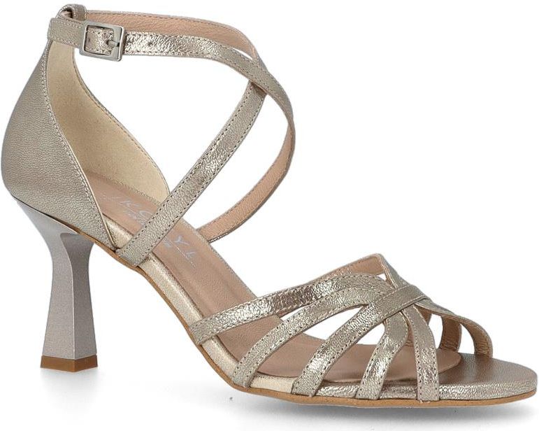 Wybór butów ślubnych jest niesamowicie ważny. Idealne buty do ślubu powinny nie tylko zachwycać swym nietuzinkowym wyglądem — ale przede wszystkim być niesamowicie wygodne, aby przetańczyć w nich całą noc. Ślubne sandały w kolorze zgaszonego złota to najnowsza propozycja od renomowanej marki Kotyl. Model butów został wykonany z najwyższej jakościnaturalnej skóry licowej. Obuwie posiada wygodny 7,5 -centymetrowy obcas typukieliszek, który wygląda bardzo efektownie i jest bardzo wygodny. Sandały z krzyżowym układem pasków wizualnie wysmuklą naszą sylwetkę. Podeszwa z nowoczesnego tworzywa chroni przed pośliźnięciem podczas szaleństw na parkiecie. Cholewka z krzyżowym układem pasków świetnie prezentuje się na stopie. Wkładka ze skóry naturalnej da nam gwarancję komfortu użytkowania nawet przez całą noc! Skórzane sandałki na obcasie to klucz do doskonałego tańca! Przepiękne sandały w eleganckim i pięknym odcieniu mieszanki złota ze srebrem, to model idealnych butów ślubnych. Zachwycają swoim niepodważalnym urokiem. Sandały dzięki minimalistycznemu wyglądowi podkreślą Twoją kobiecość. Dzięki klasycznemu fasonowi, buty będą doskonałym dopełnieniem niemalże każdej wieczorowej i eleganckiej stylizacji — nie tylko tej ślubnej. Stworzą doskonały duet z koktajlową sukienką, eleganckim kombinezonem, czy też wyjątkowo modnym damskim garniturem. W ofercie sklepu Tymoteo znajdziesz również ogromny wybór innych modeli sandałów ślubnych.