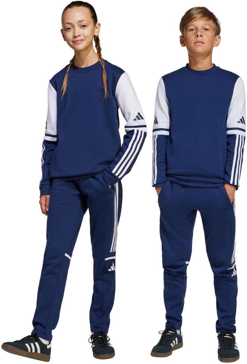 Spodnie dla dzieci adidas Squadra 25 Sweat granatowe JD4809 Właściwości Spodnie dla dzieci adidas będące częścią linii Squadra sprawdzą się podczas odpoczynku pomiędzy sesjami treningowymi. Połączenie oddychającej bawełny z trwałymi, poliestrowymi włóknami. Regularny krój ze zwężanymi nogawkami bez ściągaczy. Elastyczna talia z wewnętrznym sznurkiem do regulacji. Zapinane kieszenie boczne. Materiał 70% bawełna, 30% poliester z recyklingu