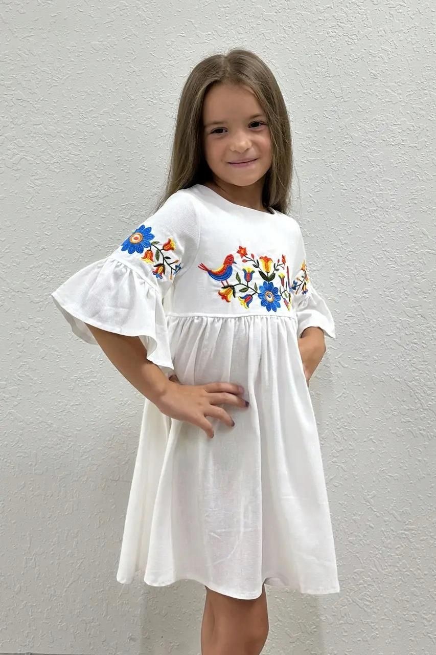 Sukienka ludowa haftowana biała haft ptaszki len bawełna 122 Radzionków