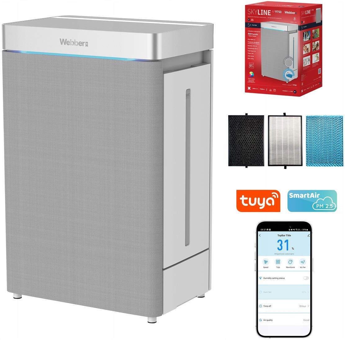 Inteligentny oczyszczacz powietrza z nawilżaczem Webber AP9750 SMART AI WiFi TUYA Oddychaj pełną piersią w swoim domu! Webber AP9750 to urządzenie klasy premium, które łączy oczyszczanie, nawilżanie i sterylizację UV-C. Dzięki nowoczesnej technologii 4 PureAir+ Water Cluster z filtrem HEPA13 …