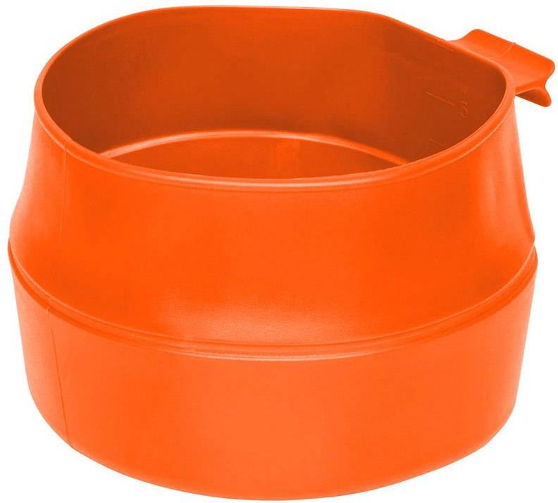 Lekki, trwały, nietłukący się i praktyczny składany kubek Fold-A-Cup® szwedzkiej firmy Wildo®. Wersja duża. Idealny na camping lub górską wędrówkę, stanowi doskonałe uzupełnienie zestawu surwiwalowego. Składana do wewnątrz konstrukcja sprawia, że podczas transportu z kubka nie będzie kapać, nawet gdy nie zostanie on odpowiednio wysuszony po opróżnieniu. Wykonany został z przyjaznego dla środowiska, wolnego od bisfenolu (BPA-free) termoplastycznego materiału. Pojemność: 600 ml Wymiary po złożeniu: 120 x 105 x 39 mm Waga: 47 g Kolor: pomarańczowy