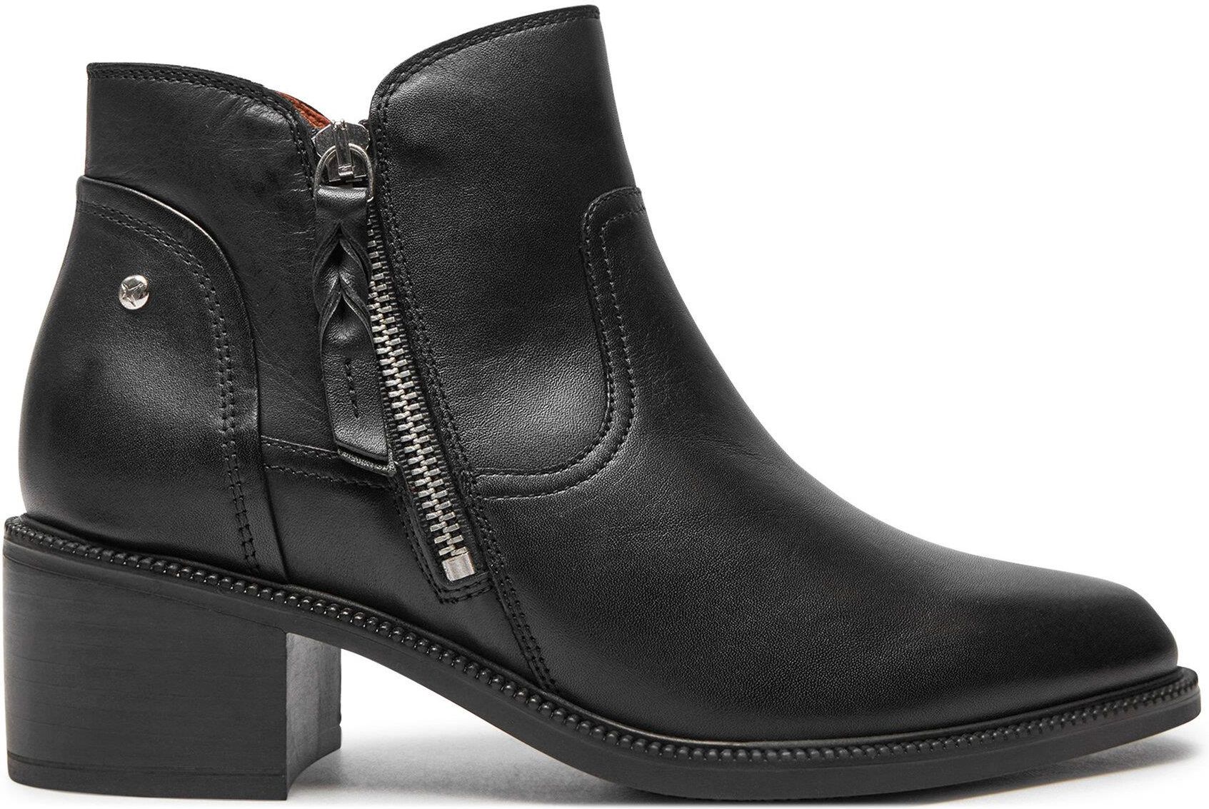 Botki na niskim i szerokim obcasie z bocznym zamkiem błyskawicznym. Bardzo wygodne, uniwersalne i łatwe do łączenia z podstawowymi akcesoriami. Cholewka: 100% skóra bydlęca Podszewka: 75% skóra świńska, 25% materiał tekstylny Podeszwa: 100% syntetyczna Rodzaj zapięcia: zamek błyskawiczny Wysokość obcasa: 5,5 cm Obwód cholewki 25 cm (rozmiar 37 eur/4 uk/6,5-7 usa) Dodatkowy komfort. Ref.: W2D-8674, Materiał zewnętrzny: Skóra, Kolor: Czarny, Wysokość obcasa: 5 do 8 cm, Zamknięcie: Zamek błyskawiczny, Styl: Zwykły