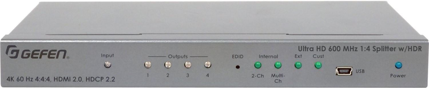 Gefen EXT-UHD600-14 | Splitter HDMI 4K UHD, 1 x 4, HDR, 4K 4:4:4, HDMI 2.0 Projektowanie systemów zdolnych do dystrybucji mediów w rozdzielczości 4K UHD wymaga obsługi dzisiejszych treści i zapewnienia miejsca na treści z przyszłości. Seria splitterów EXT-UHD600 przenosi HDMI 2.0 do najwyższej …