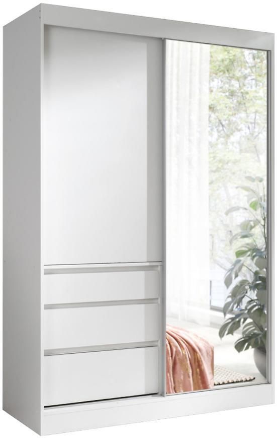Szafa jest ważnym elementem wyposażenia każdego pomieszczenia, który posiada dużo miejsca do przechowywania. Różne rodzaje szaf świetnie sprawdzą się w różnych aranżacjach , np : szafa przesuwna, szafa narożna, szafa wnękowa, a może szafy młodzieżowe sam możesz zdecydować i wybrać odpowiednią szafę do domu, mieszkania, aby wnętrze Naszego salonu, przedpokoju cieszyły i spełniał swoją funkcję. Szafa z przesuwnymi drzwiami Haiti Szafa w kolorze białym z kolekcji Haiti to doskonała propozycja do pokoju dziennego, ale znajdzie swoje miejsce również w innym pomieszczeniu, jak na przykład - przedpokój czy garderobie, sypialni. Materiał wykonania to płyta laminowana. Szafa posiada półki, drążek na ubrania. oraz szuflady. Duża szafa posiada również lustro, które sprawi, że pomieszczenie stanie się optycznie większe. Mebel będzie świetnym miejscem do wieszania ubrań, na buty lub inne domowe tekstylia. Nowoczesny styl mebli wpadnie do gustu każdemu, kto poszukuje eleganckiego, klasycznego, a zarazem nowoczesnego umeblowania. Idealnie wpasuje się w większość aranżacji . Szafa przeznaczona do samodzielnego montażu. Szafa i jej wnętrze W naszej ofercie znajdziesz różne meble, niezbędny element wyposażenia wnętrz. Wybierając szafy sam zdecydujesz czego potrzebujesz - szafy na ubrania są z wieszaki, szufladami, półkami, do wyboru sposób otwierania- drzwi przesuwne, drzwi uchylne, ilość drzwi, a także szafa z lustrem, które będą doskonale pasowały do wnętrz nowoczesnych. Szeroki wybór szaf w ofercie pozwala dopasować mebel nawet do trudnego do aranżacji pomieszczenia w zależności od potrzeb. Warto więc zapoznać się z całą ofertą i wybrać swoją wymarzoną szafę!