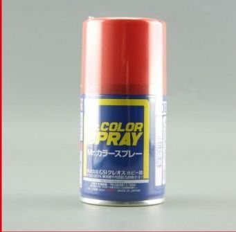 Mr.Color Spray (S) to najwyższej jakości farby akrylowe, oparte na rozpuszczalnikach organicznych.Ich odwzorowanie i bogactwo kolorów, jakość i trwałość powłoki są perfekcyjne.Zastosowanie drobno mielonych pigmentów oraz wysokiej jakości komponentów gwarantuje uzyskanie cienkiej ale trwałej powierzchni bez zalewania najdrobniejszych nawet detali. Spraye z tej serii to odpowiednik farb “słoiczkowych” Mr.Hobby serii C.Sposób użycia:Przed użyciem dobrze wstrząsnąć i doprowadzić do temperatury pokojowej.Nanosić płynnym, jednostajnym ruchem z odległości 15-20 cm. Wskazówki:Dla niewprawionych w malowaniu sprayem sugerujemy przeprowadzenie prób na kawałku plastiku.Umiejętne kontrolowanie strumienia lakieru zapobiegnie powstawaniu zacieków.Aby poprawić przyczepność farby, uzyskać gładką strukturę oraz trwałość malowanej powierzchni, zalecamy zastosowanie jednej z podkłado-szpachlówek Mr.Surfacer w sprayu lub do aerografu.
