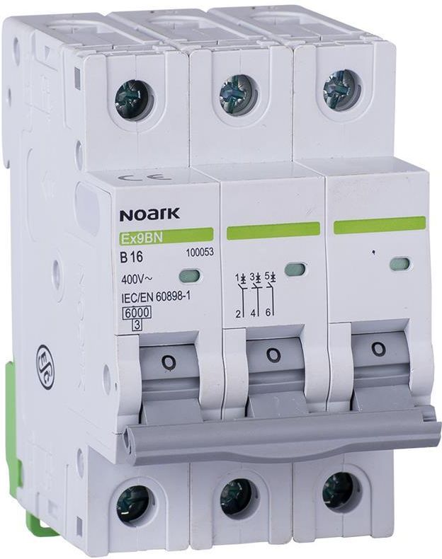 NOARK wyłącznik nadprądowy 3P B 40A 100057 NOARK Electric Wyłącznik nadprądowy z serii Ex9BN, producenta NOARK Electric. Model Ex9BN 3P B40 to wszechstronny produkt, który zapewnia niezawodną ochronę elektryczną. Znamionowa zwarciowa zdolność wynosząca 6 kA gwarantuje bezpieczeństwo i skuteczne działanie. 3-biegunowy wyłącznik nadprądowy jest doskonałym rozwiązaniem do zastosowań domowych, jak i przemysłowych. Charakterystyka wyzwalania B zapewnia skuteczną ochronę urządzeń elektroenergetycznych, o dużych prądach rozruchowych. Produkt Ex9BN 3P B40 cechuje się wysoką jakością wykonania, a także stopniem ochrony IP20, co zapewnia odpowiednią izolację i bezpieczeństwo podczas użytkowania. Cechy produktu NOARK Electric Wyłącznik nadprądowy Ex9BN 3P B40 100057 Seria: Ex9BN Typ produktu: Wyłącznik nadprądowy Rozmiar: 3P Producent: Noark Kod producenta: 100057 Rodzaj produktu: Wyłącznik nadprądowy Zwarciowa zdolność łączeniowa: 6 kA Liczba biegunów: 3 Prąd znamionowy: 40 A Charakterystyka wyzwalania: B Stopień ochrony IP: IP20 Cechy wyłączników nadprądowych Noark 5 lat gwarancji Prąd znamionowy od 1 A do 125 A Charakterystyki wyzwalania B, C, D Kolorowe dźwignie w serii Ex9BH i Ex9B125 Okienko sygnalizacyjne wskazuje stan wyłącznika Możliwość podłączenia szyn łączeniowych Łatwy montaż na szynie TH-35 mm Solidna i wytrzymała konstrukcja Dowolny kierunek zasilania Szeroki wybór akcesoriów