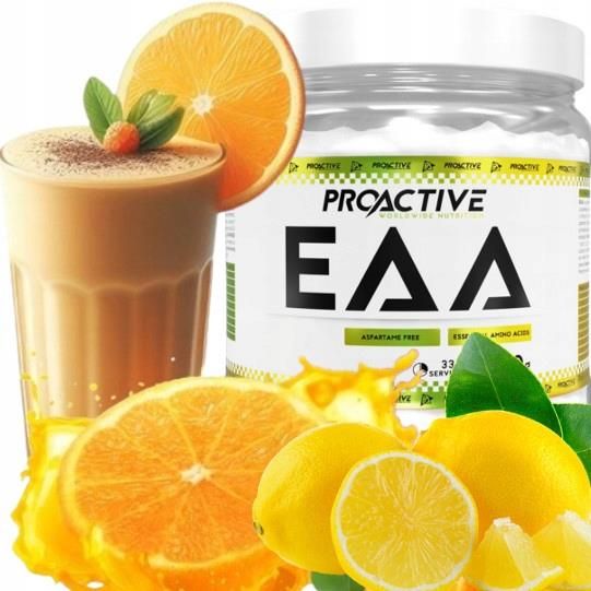 AMINOKWASY egzogenne REGENERACJA ProActive EAA Cytryna-Pomarańcza 400g ProActive EAA 400g Lemon Orange EAA to suplement diety w formie proszku, przeznaczony zarówno dla profesjonalnych sportowców jak i osób amatorsko uprawiających sport, uzupełniający ich dietę w aminokwasy egzogenne EAA. Składniki aktywne jedna porcja 12g L-leucyna, 3333mg L-walina, 1467mg L-lizyna, 1467mg L-fenyloalanina, 1200mg L-treonina, 1000mg L-izoleucyna, 660mg L-histydyna, 467mg L-metionina, 333mg L-tryptofan, 133mg Składniki L-leucyna, L-walina, L-lizyna, L-fenyloalanina, L-treonina, L-izoleucyna, L-histydyna, L-metionina, L-tryptofan, regulator kwasowości: kwas cytrynowy, aromaty, substancja słodząca: sukraloza, barwniki dla smaków: czerwień koszenilowa A dla smaku truskawkowo-arbuzowego; żółcień pomarańczowa dla smaku cytrynowo pomarańczowego, Żółcień pomarańczowa może mieć szkodliwy wpływ na aktywność i skupienie uwagi u dzieci. Zawiera źródło fenyloalaniny. Zawiera substancje słodzącą. Sposób użycia Spożyć raz dziennie 12 g (2 miarki) produktu wymieszane z 250 ml wody. Nie przekraczać maksymalnej ilości 1 porcji (12 g = 2 miarki) do spożycia dziennie. Miarka załączona do opakowania. Najlepiej spożyć przed końcem i numer partii patrz na opakowaniu. Zawartość opakowania 400 g, 33 porcje. Przechowywanie Przechowywać w suchym i chłodnym miejscu, chronić przed światłem. MIARKA GRATIS Razem z naszym suplementem otrzymasz gratisową miarkę do precyzyjnego odmierzania porcji produktu. Dzięki temu będziesz mógł dokładnie kontrolować swoje spożycie i osiągnąć jeszcze lepsze rezultaty treningowe. UWAGI Suplementy diety nie mogą być stosowane jako substytut (zamiennik) zróżnicowanej diety i zdrowego trybu życia. Suplementy diety powinny być przechowywane w sposób niedostępny dla małych dzieci. Produkt przeznaczony dla osób dorosłych i zdrowych. Produkt nie jest przeznaczony dla dzieci oraz kobiet karmiących piersią. Marka ProActive ProActive to znany i ceniony producent suplementów diety. Każdy produkt stworzony jest w taki sposób, aby jak najlepiej odpowiadał potrzebom doświadczonych sportowców. Suplementy diety ProActive to doskonała propozycja zarówno dla osób, które trenują od dawna, jak i do tych, którzy stawiają pierwsze kroki na sportowej ścieżce. ProActive oferuje Ci mnóstwo zróżnicowanych odżywek, w tym białka, BCAA, aminokwasy, kreatynę i wiele, wiele innych. ProActive jest dumnym przedstawicielem polskiego przemysłu suplementów diety, kupując nasze produkty, nie tylko inwestujesz w swoje zdrowie i dobre samopoczucie, ale również wspierasz rodzime przedsiębiorstwo, które promuje innowacyjność i jakość na światowym rynku.